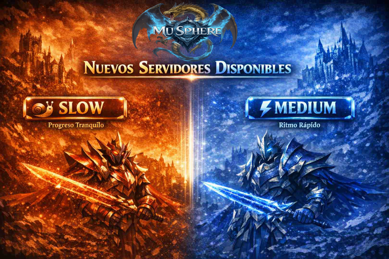 Servidor Slow 🐌 EXP 100x Dinámica // DROP 20% // MASTER EXP 5x. Servidor Medium⚡ EXP 500x // DROP 40% // MASTER EXP 10x.